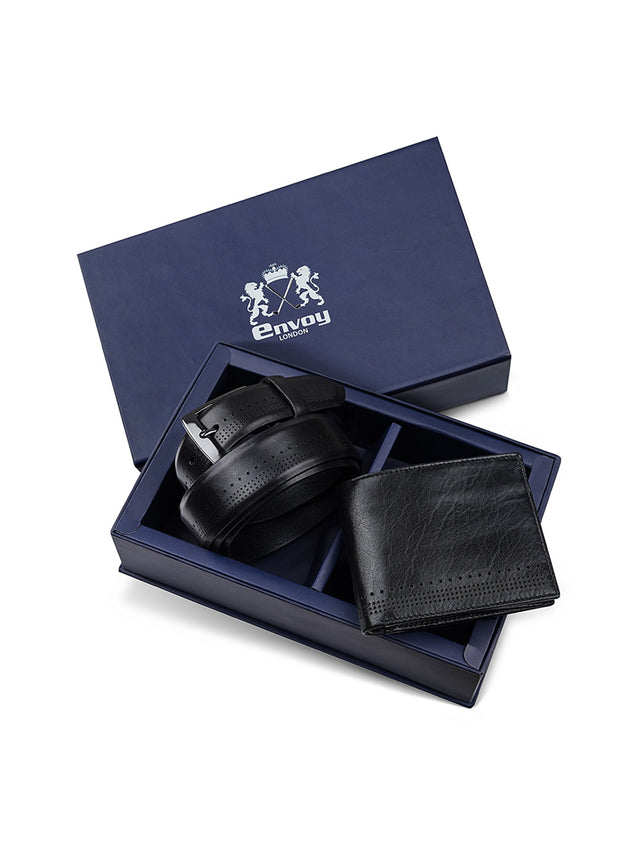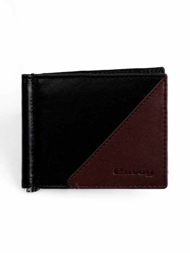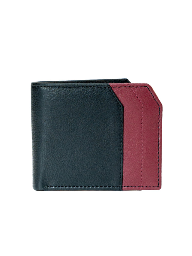 Men’s Smooth Finish Black with Maroon Design Full Grain Leather Wallet